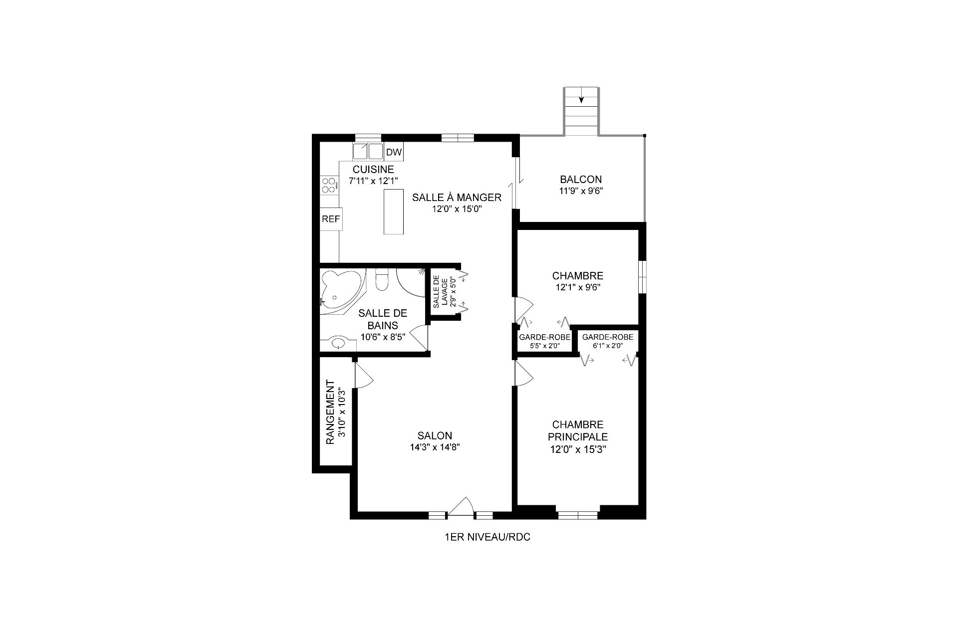 | Chambre à coucher principale | Sous-sol | 12.0x15.0 P | Plancher flottant | |