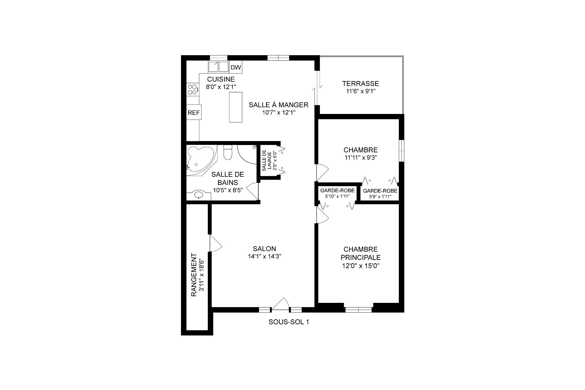 | Salon | Sous-sol | 14.1x14.3 P | Plancher flottant | |