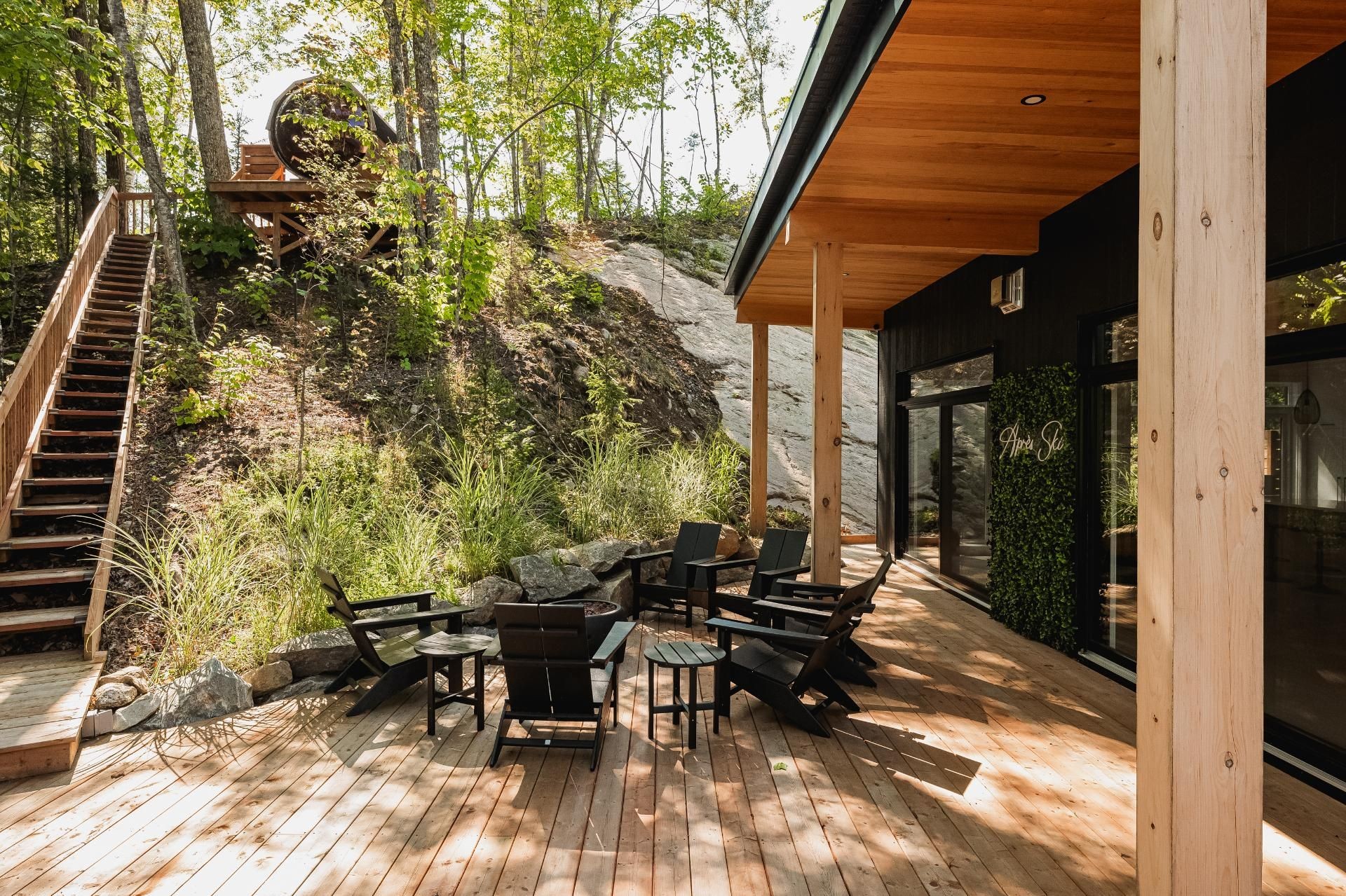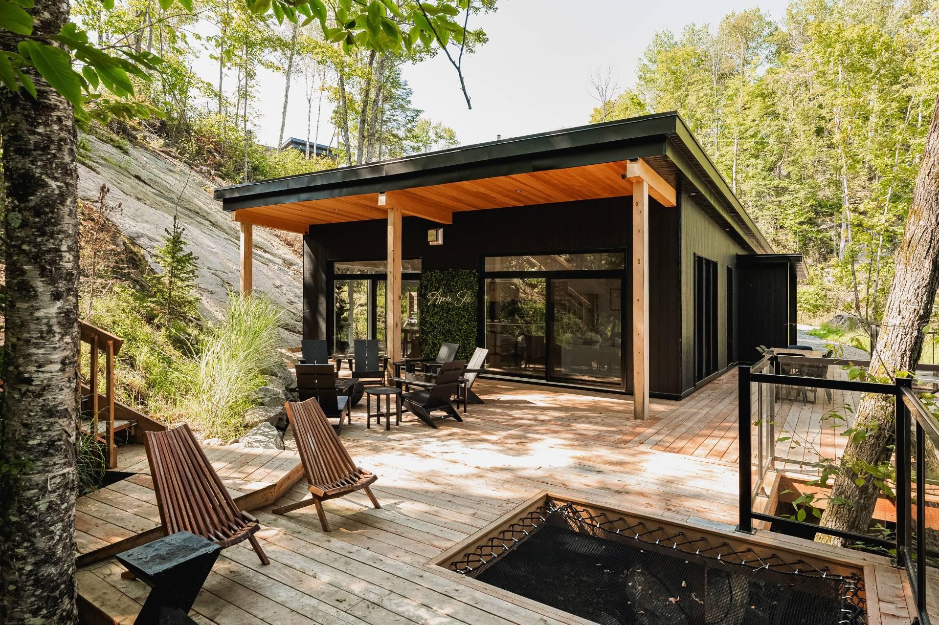 LOCATION COURT TERME AUTORISÉE! Superbe chalet de luxe 3 chambres, 2 salles de bain, situé à seulement 12 min de Mont-Tremblant. Design moderne, matériaux haut de gamme, plancher chauffant, vaste terrasse avec jacuzzi. Un équilibre parfait entre confort, nature et rendement. Un investissement clé en main alliant plaisir et rentabilité, au coeur du domaine ChicShack!