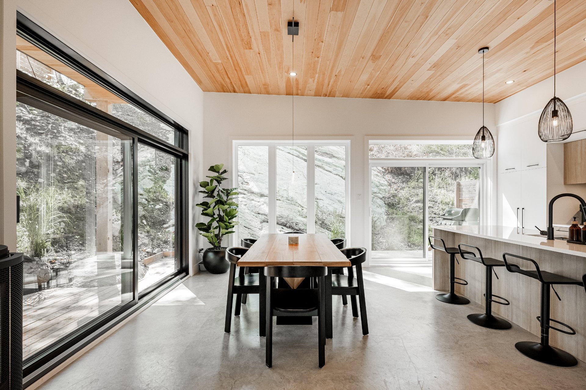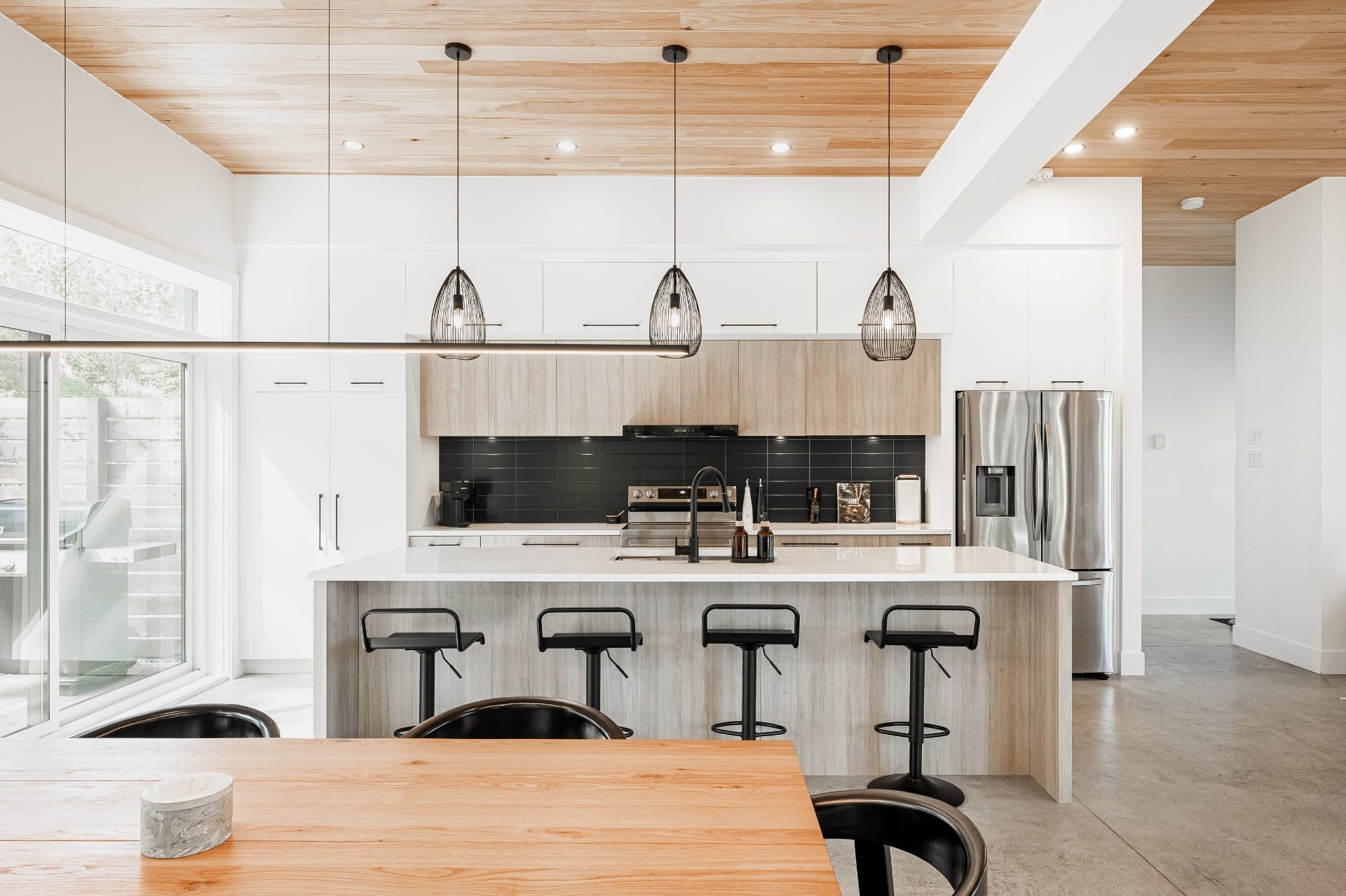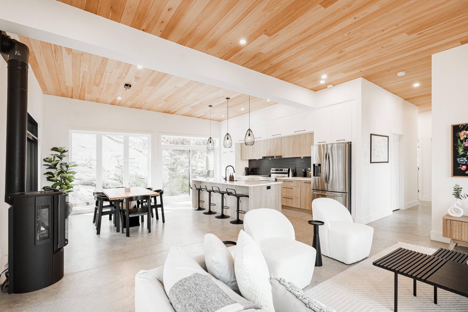 + 3 chambres et 2 salles de bain+ Superficie intérieure : env. 1500 pi²+ Design contemporain et finitions haut de gamme (comptoirs de quartz, plancher de béton chauffant)+ Grandes fenêtres offrant une luminosité abondante+ Grande terrasse en bois avec jacuzzi extérieur+ Prise pour voiture électrique+ Personnalisation possible selon vos goûts et besoins