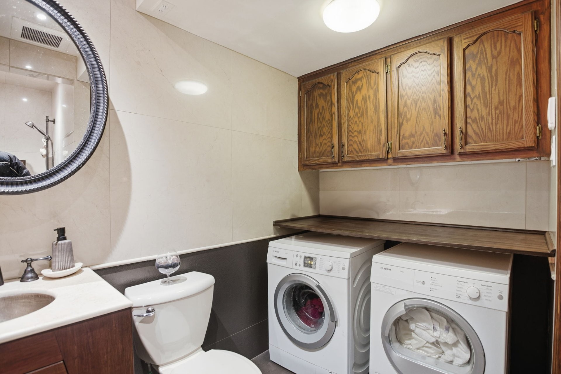 L'unité principale est un spacieux 7½ avec sous-sol, bien configuré et clé en main, prêt à être occupé immédiatement. Elle comprend un système de climatisation centrale avec thermopompe, une cave à vin intégrée au rez-de-chaussée, un grand placard en cèdre ainsi qu'une pièce dédiée avec rangement mural pleine largeur et lit escamotable (Murphy bed).