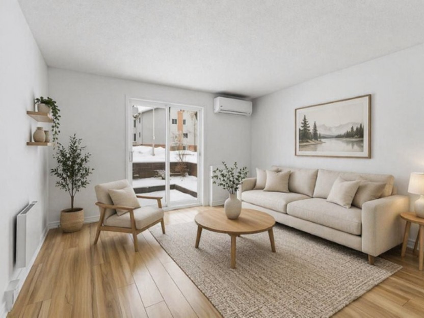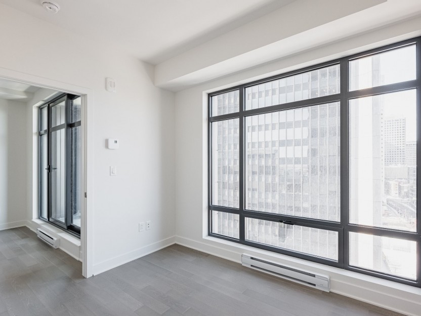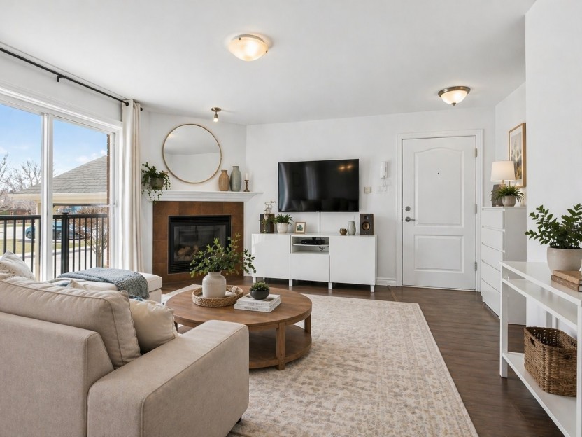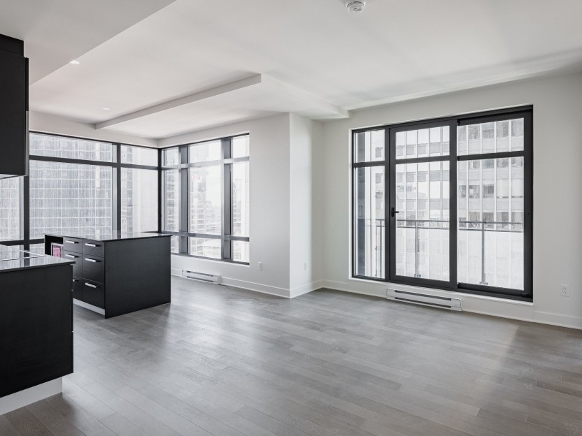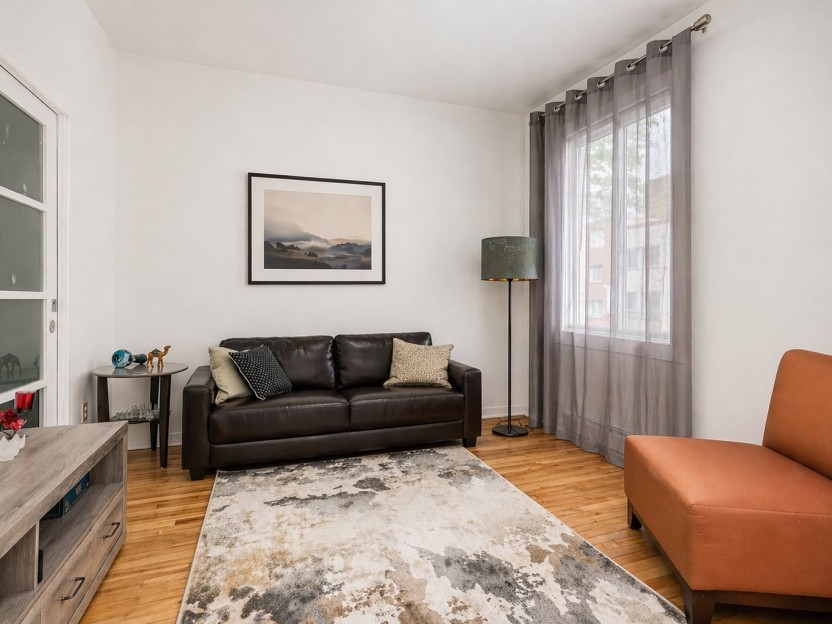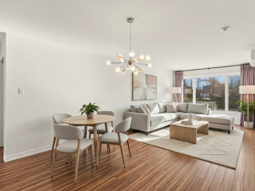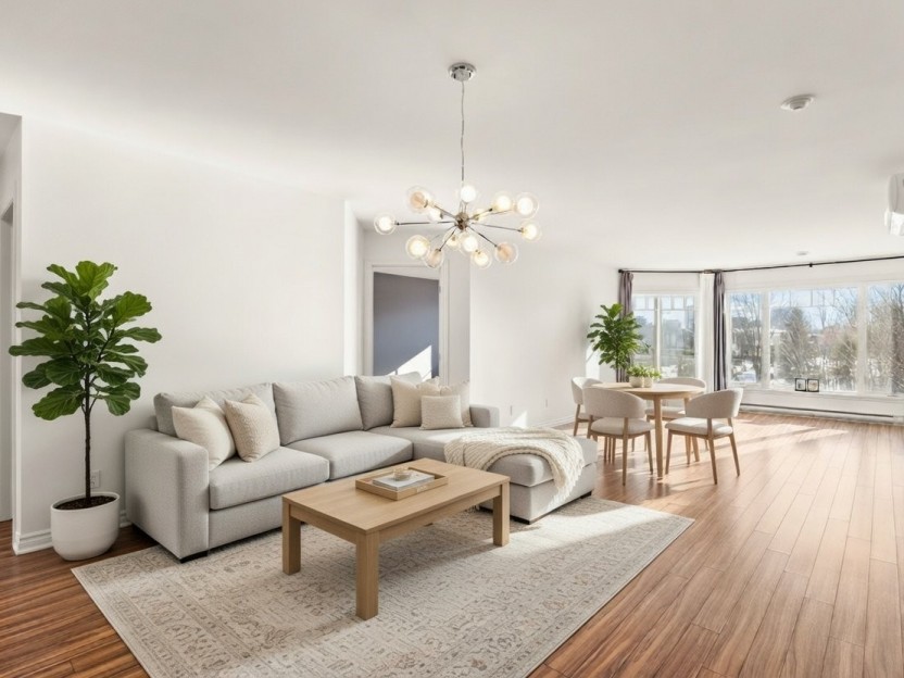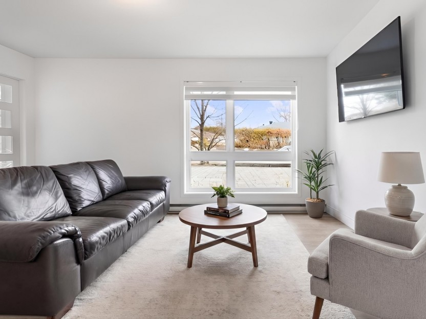 Appartement de coin fonctionnel et bien éclairé grâce à sa fenestration sur troi...