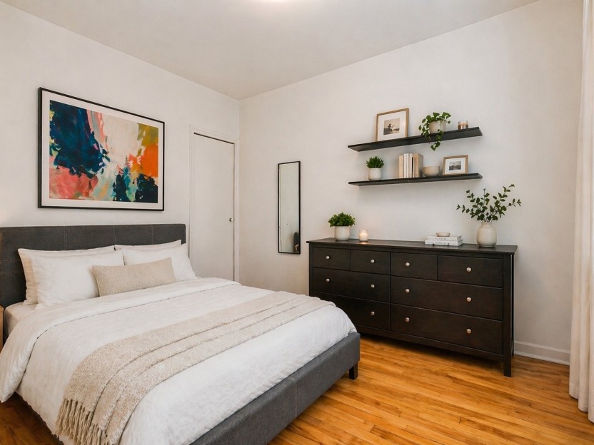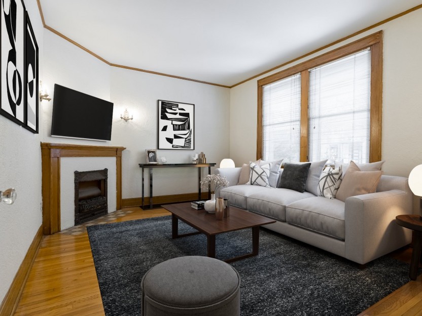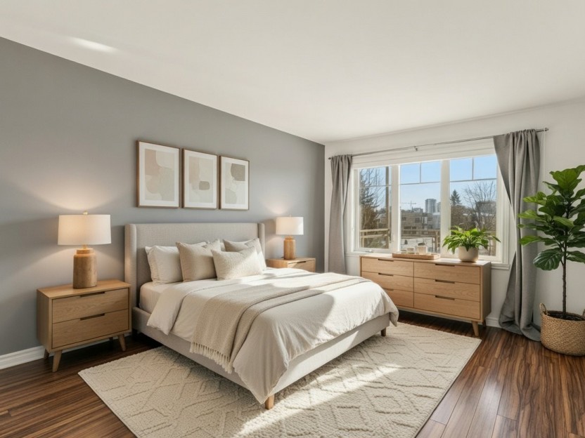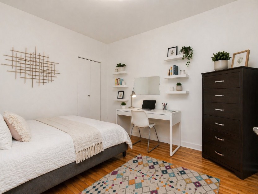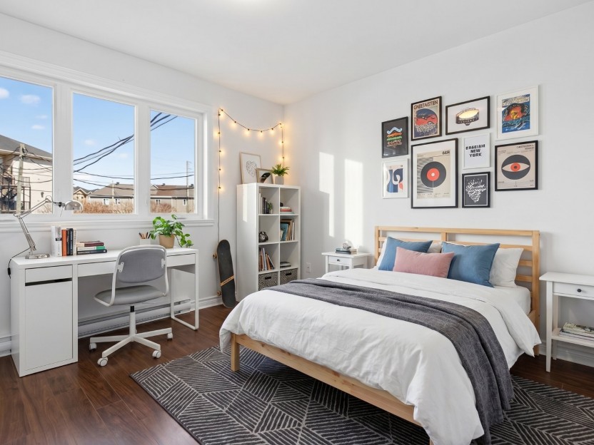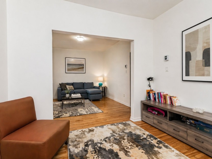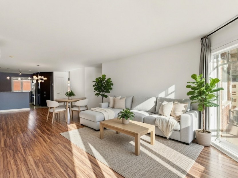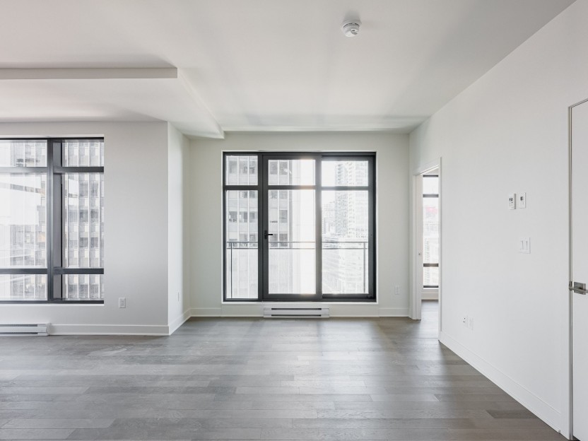 Appartement de coin fonctionnel et bien éclairé grâce à sa fenestration sur troi...