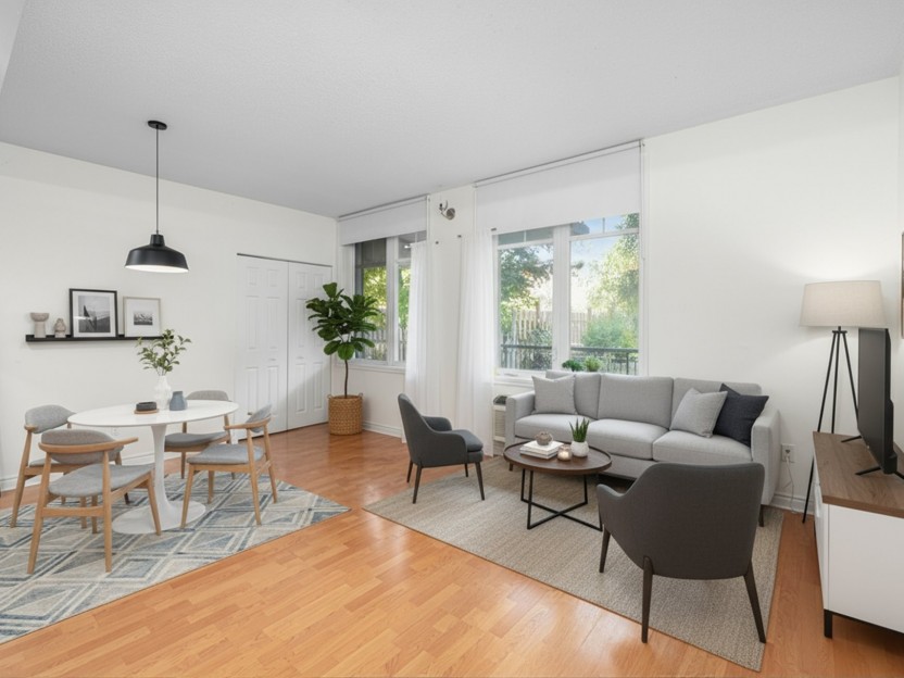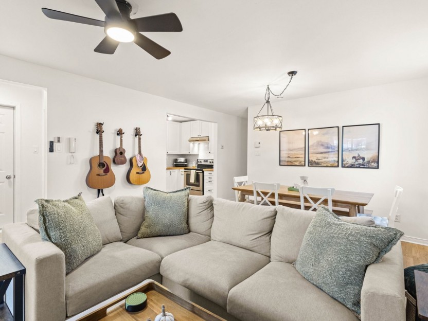 Condo de coin au rez-de-chaussée bien aménagé, comprenant une chambre fermée et...