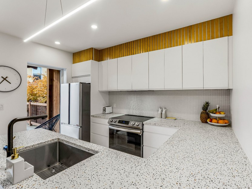 Superbe maison de ville rénovée avec soin. Cuisine modernisée avec comptoirs en...