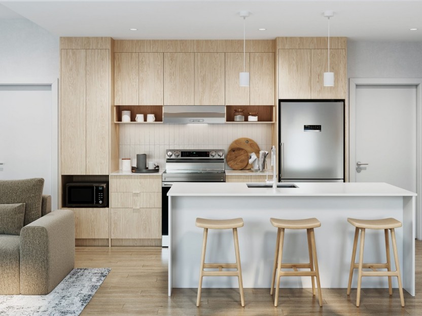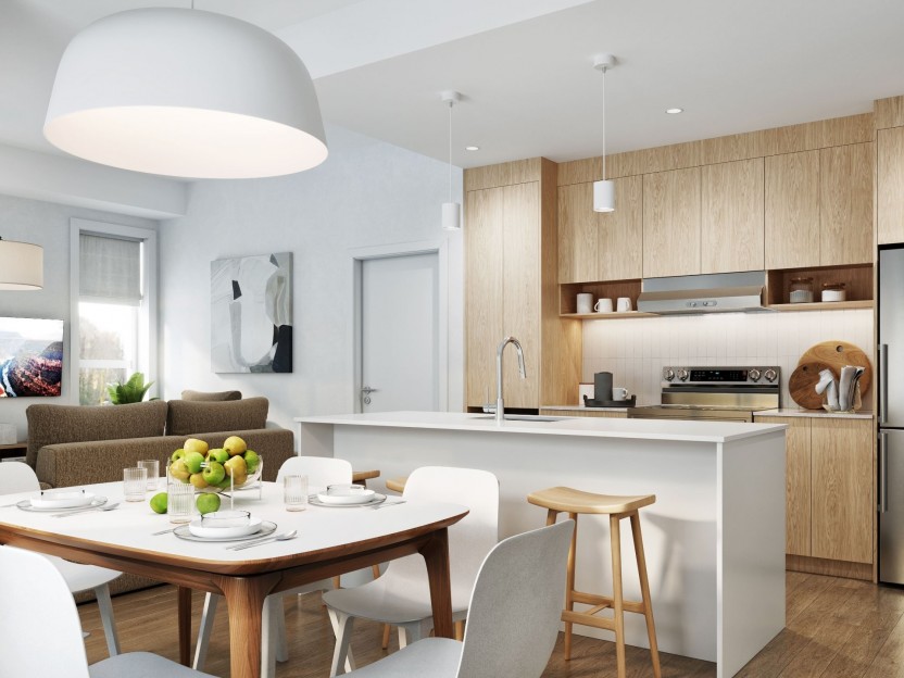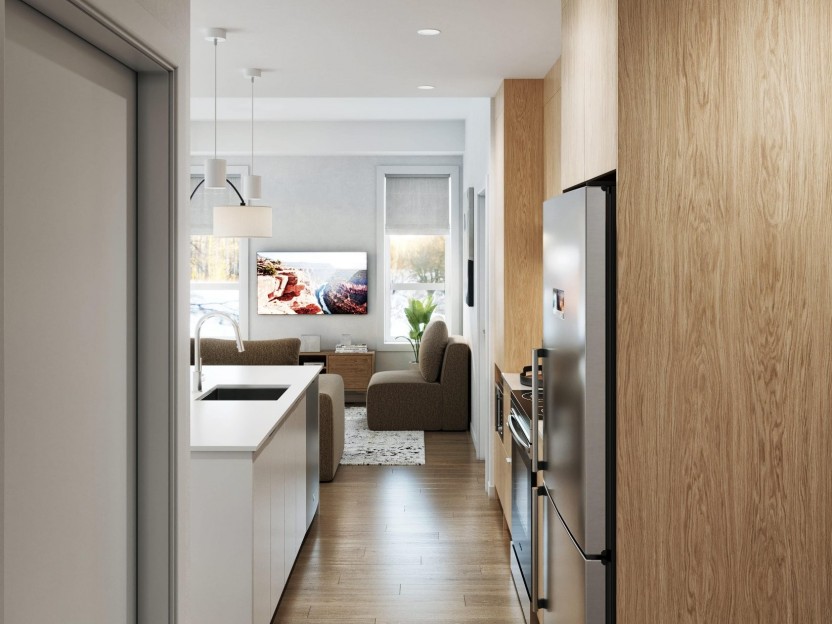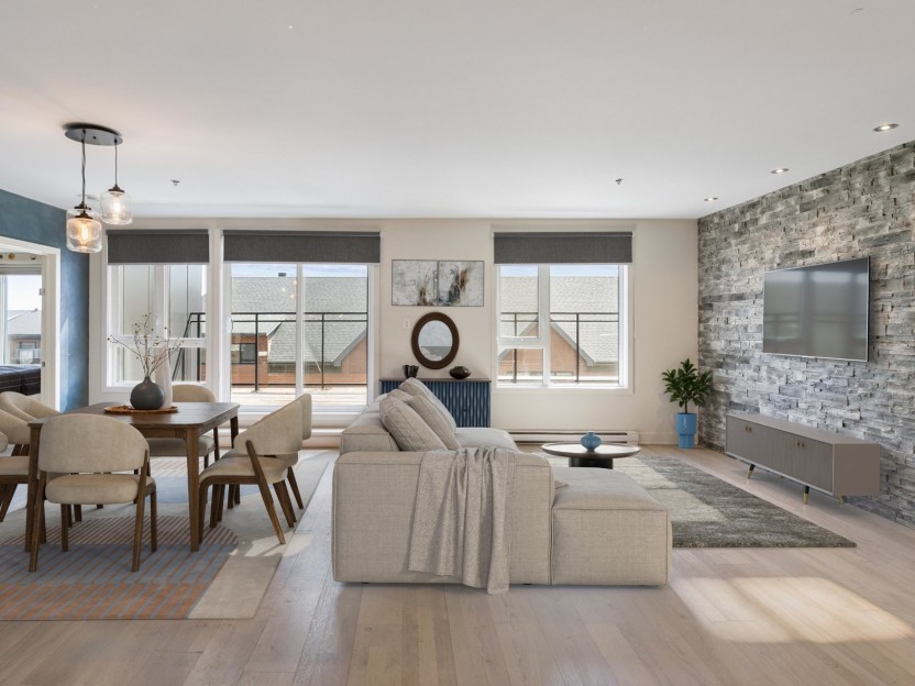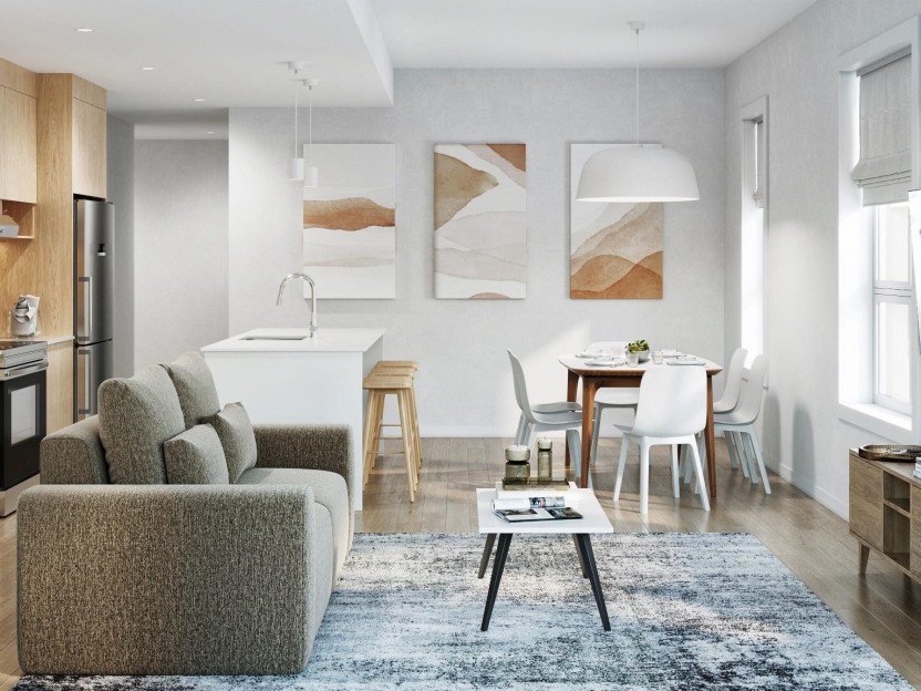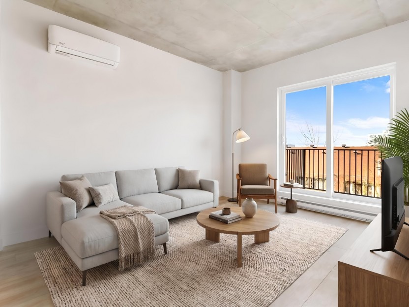Unité lumineuse et bien pensée au 2e étage à Espace MV3, avec aire salon-salle à...