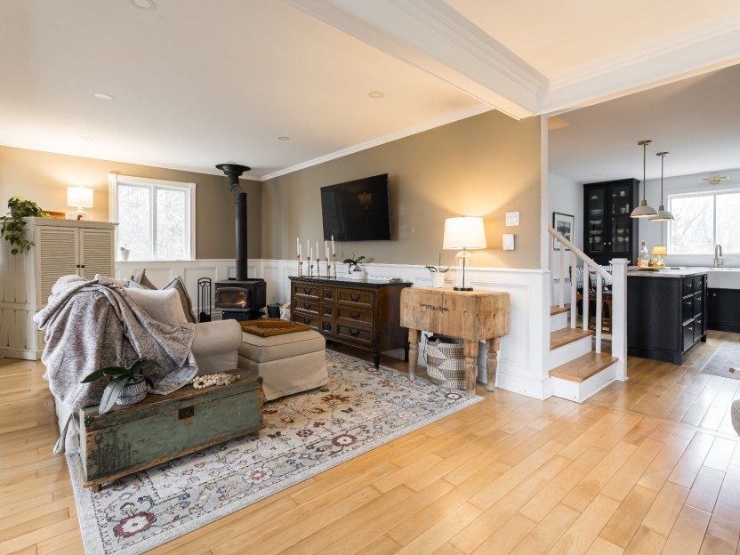 Nichée sur un grand lot en coin paysager, cette demeure conjugue confort contemp...